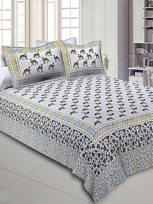 pure cotton jaipuri queen size bedsheet with 2 pillow covers