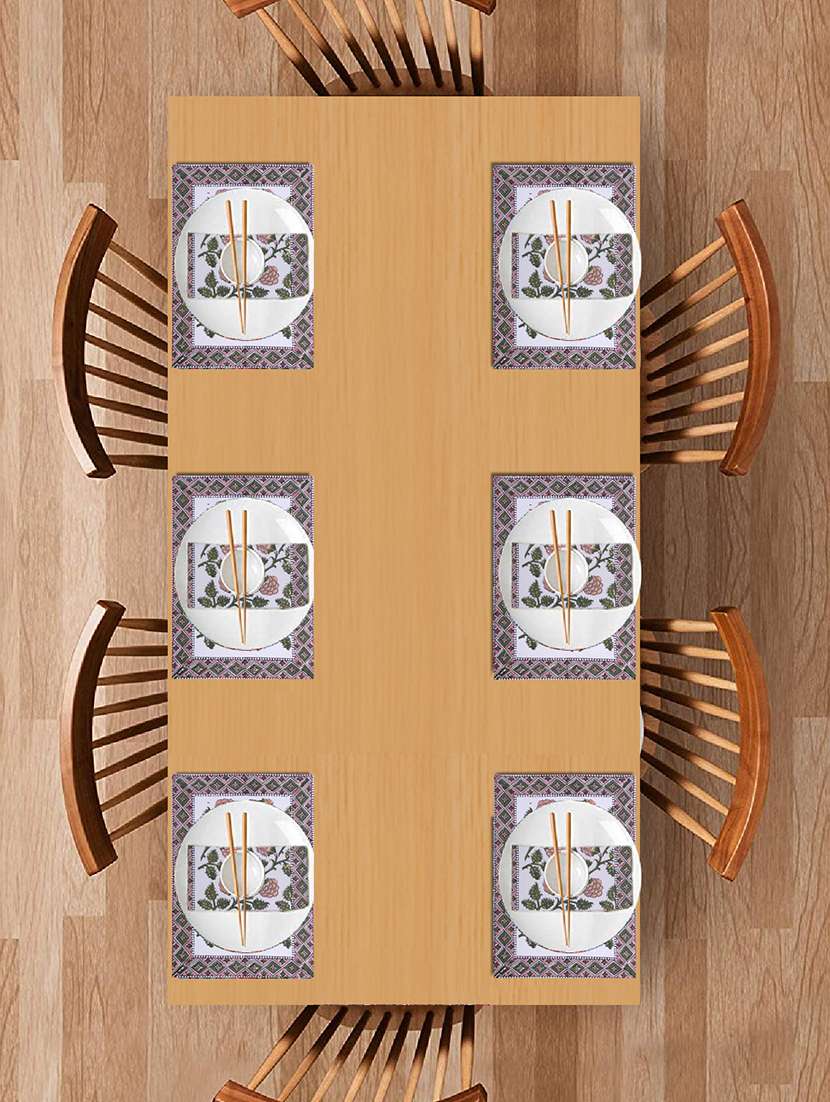 - » texstylers block printed pure cotton jaipuri print mat and napkin set(6 mat and 6 napkins)
