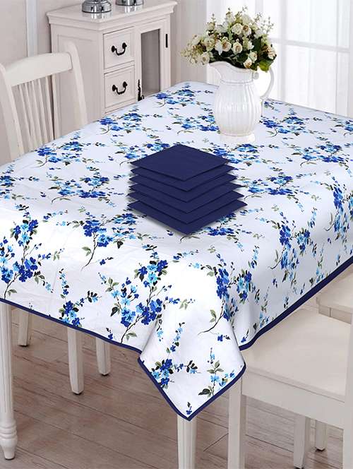 texstylers 200 tc pure cotton canvas jaipuri block printed 6 seater table cloth cover with 6 napkins