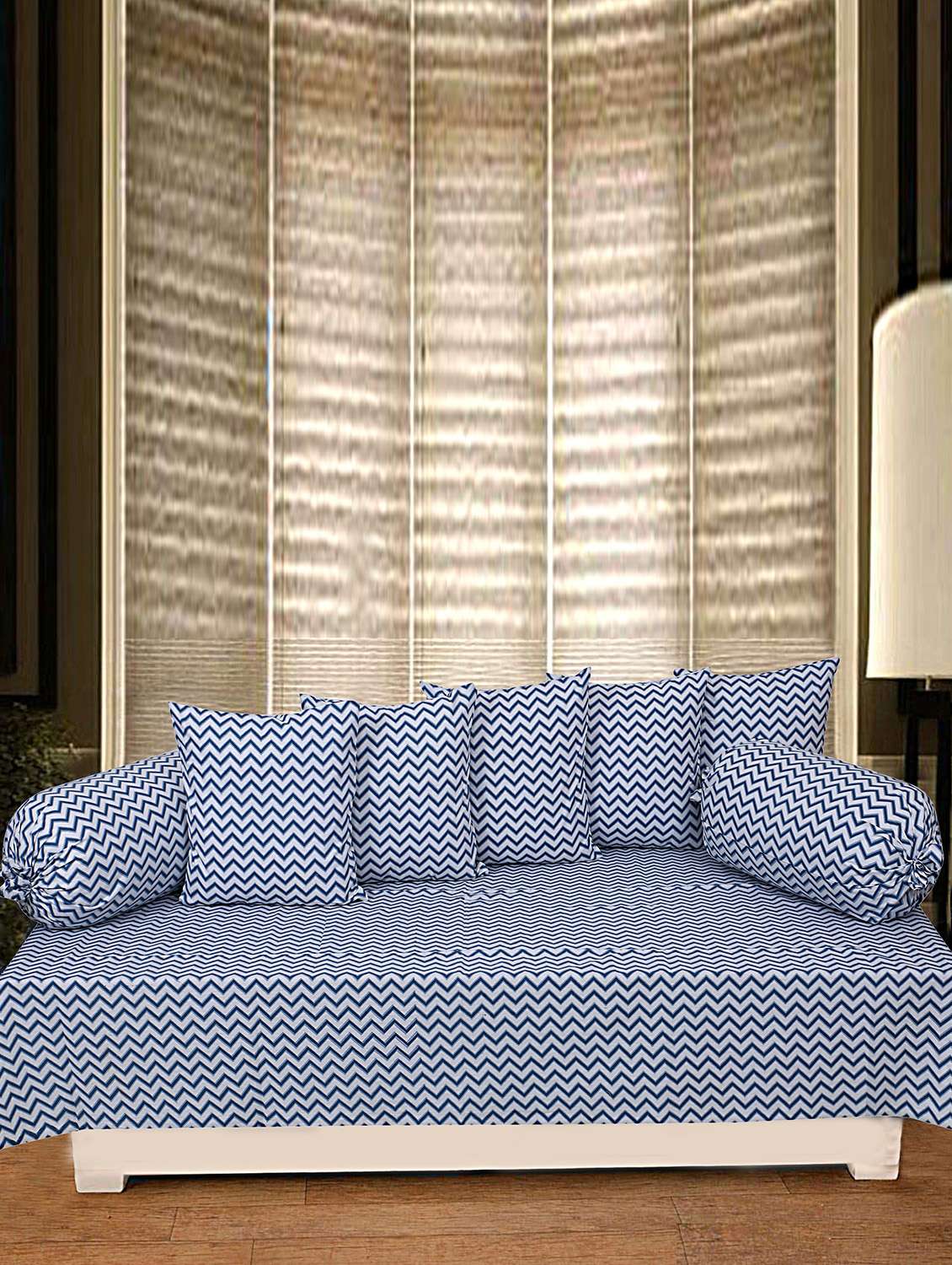 - » texstylers 100% cotton jaipuri allover print 200 tc stripe pattern set of 8 pcs's diwan set