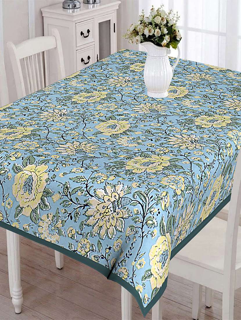 texstylers multicolor cotton printed 6 seater rectangular dining table cloth(60" x 90")