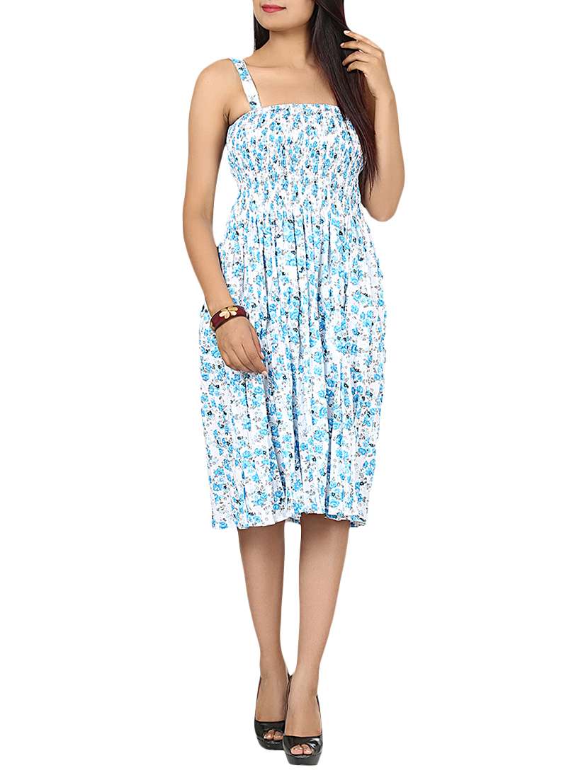 blue printed cotton a-line dress