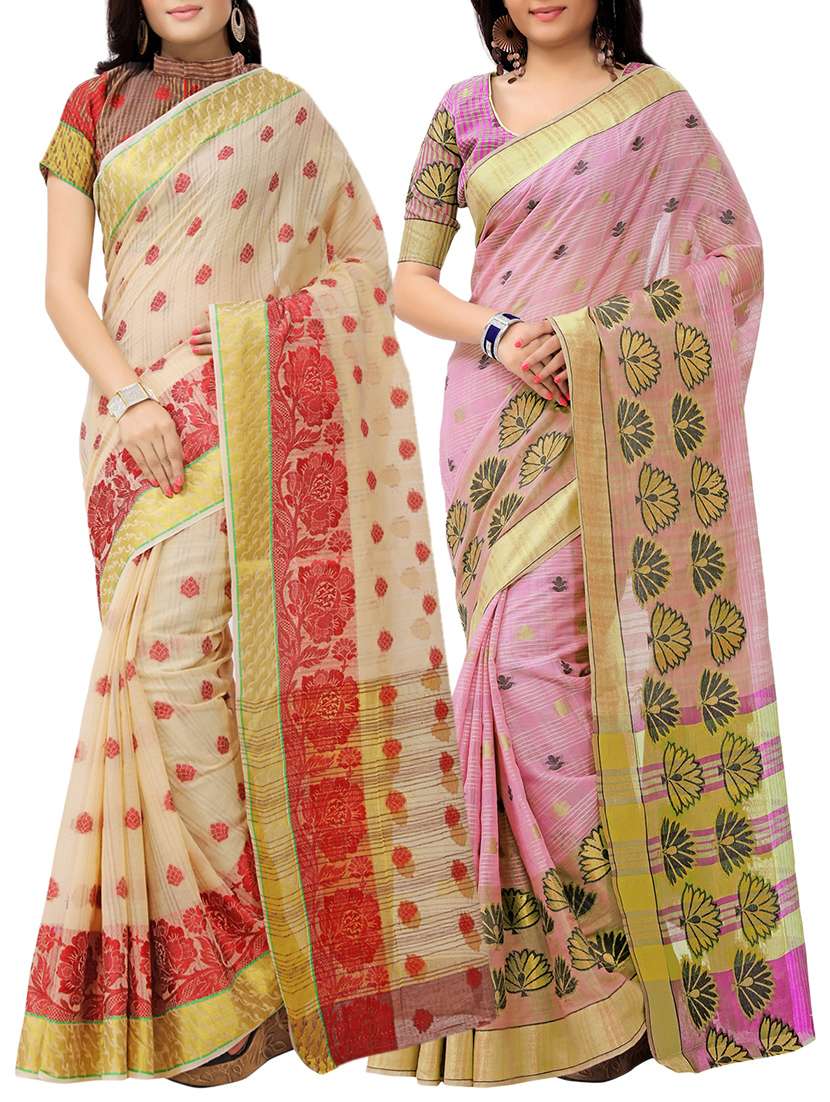 set of 2 zari bordered saree with blouse
