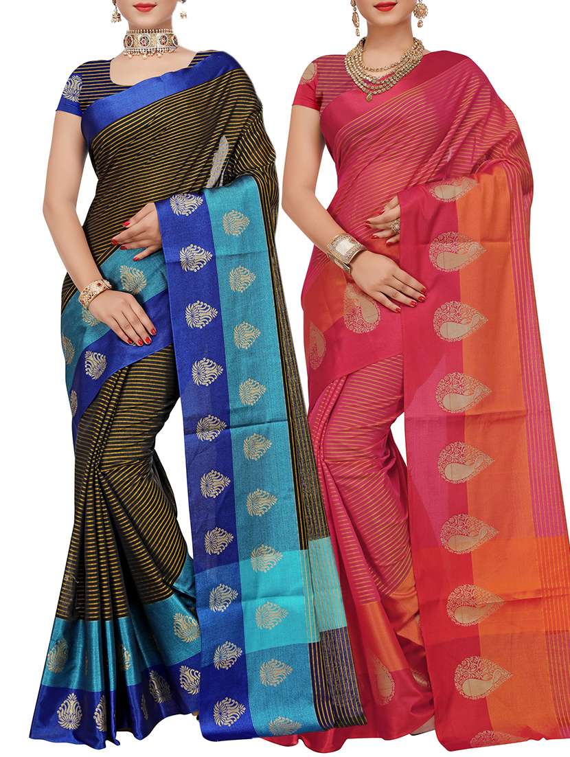 set of 2 zari bordered saree with blouse