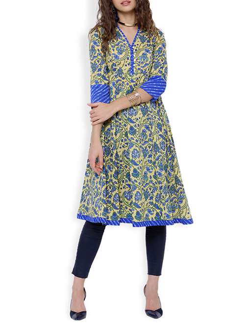 multi colored cotton printed anarkaliu