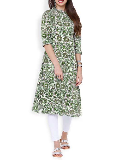 - » green cotton a-line kurta
