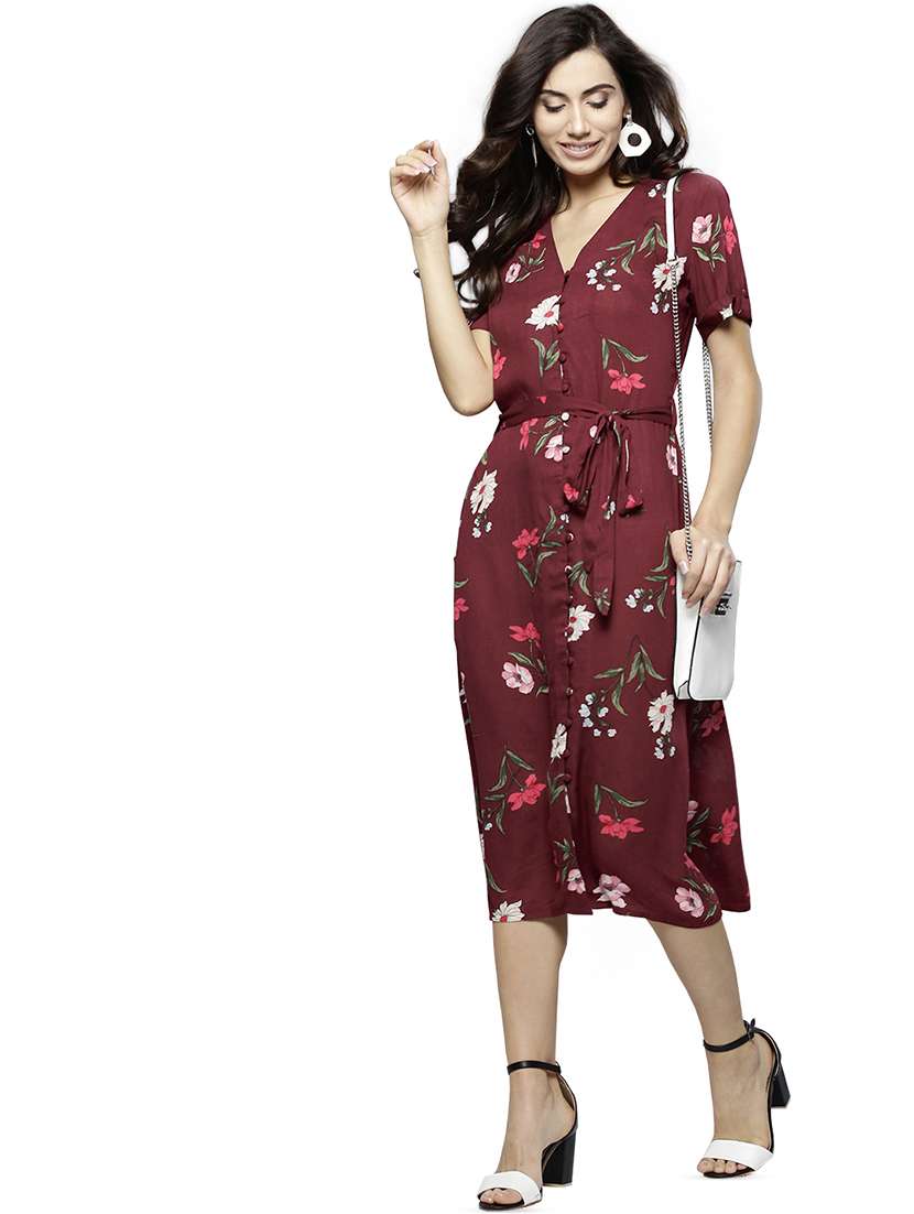 - Dress up in a soothing pattern and don this dress made of cotton material.