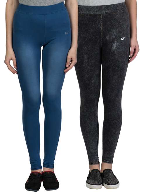 - » set of 2 multi colored cotton jeggings