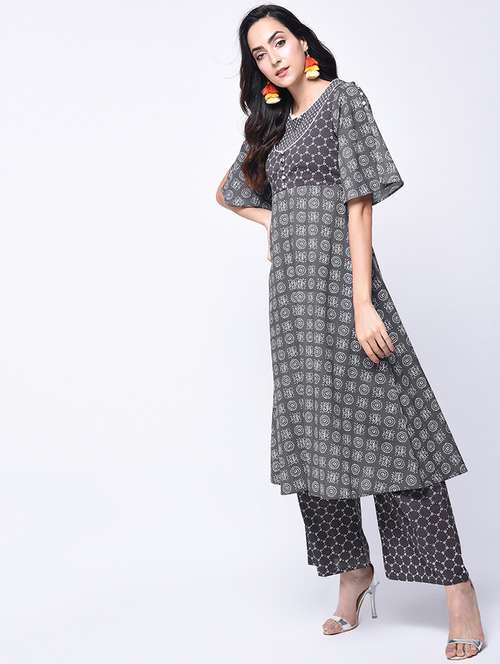 printed flared kurta with palazzo set - 15926950 - Very Small Image - 1