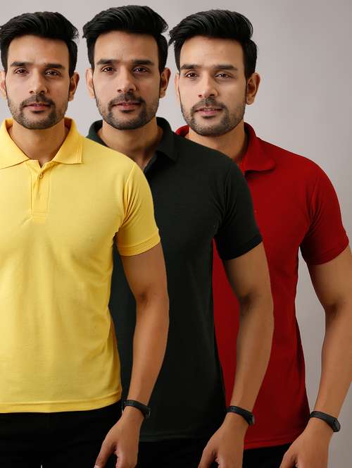 - » set of 3 multi colored solid polo t-shirts