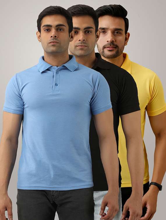 - » set of 3 multi colored solid polo t-shirts