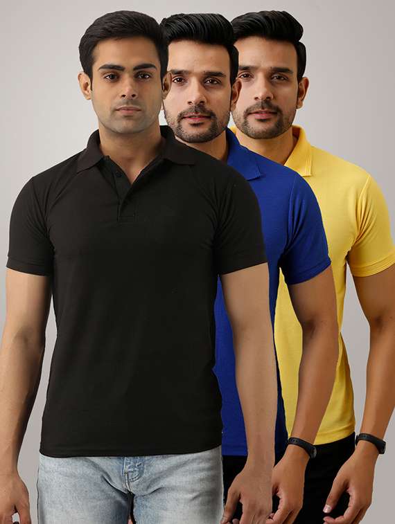 - » set of 3 multi colored solid polo t-shirts
