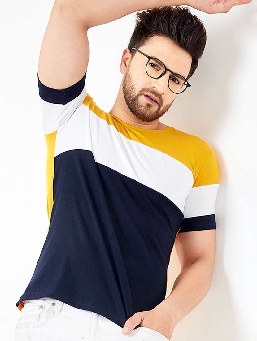 navy-blue crew-neck color-block t-shirt
