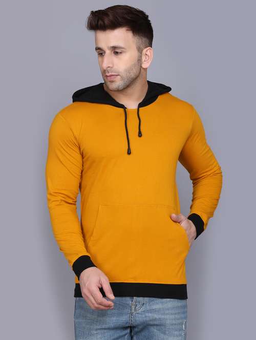 - » mustard color block cut & sew hooded t-shirt