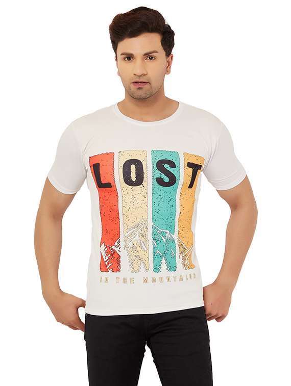 - » round neck printed regular t-shirt