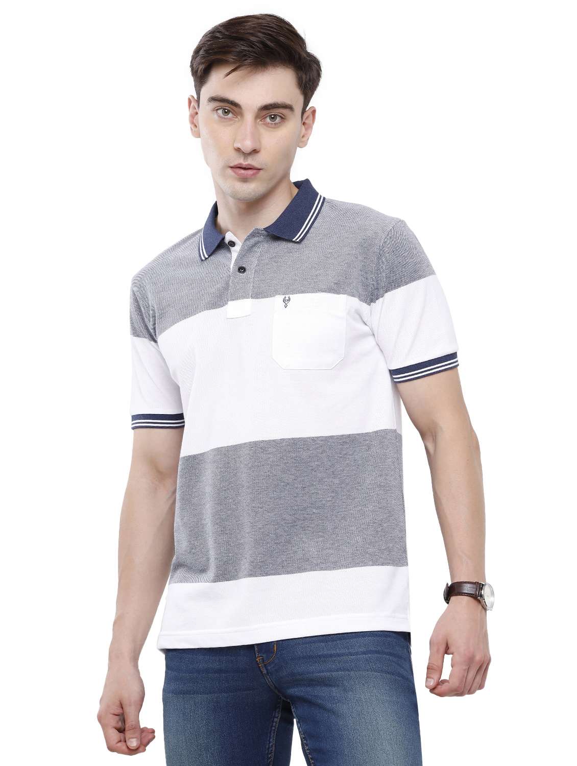 blue striped polo t-shirt