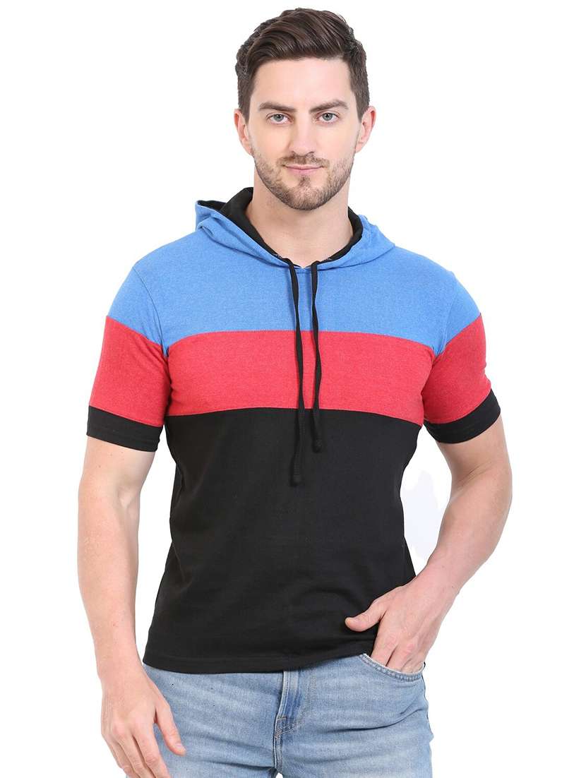 - » multi colored color blocked short sleeve hooded neck t-shirt