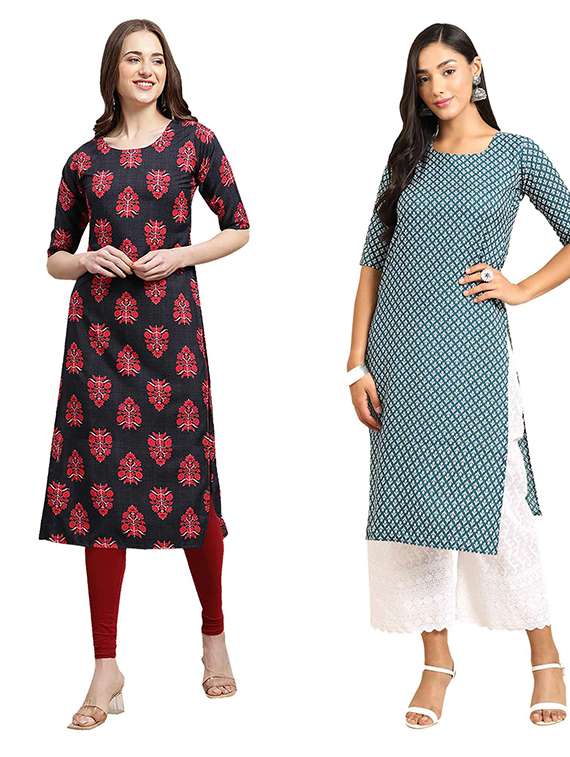 - » pack of 2 multi colored printed straight kurta