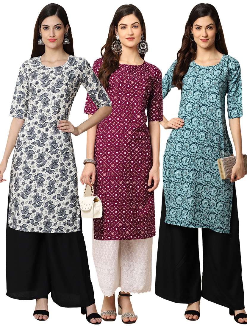 pack off 3 printed straight kurta - 19398518 - Very Small Image - 1