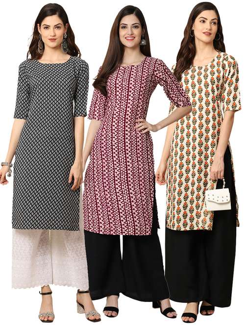 pack off 3 printed straight kurta - 19398624 - Very Small Image - 1