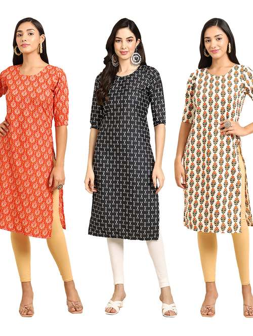 pack off 3 printed straight kurta - 19398669 - Very Small Image - 1
