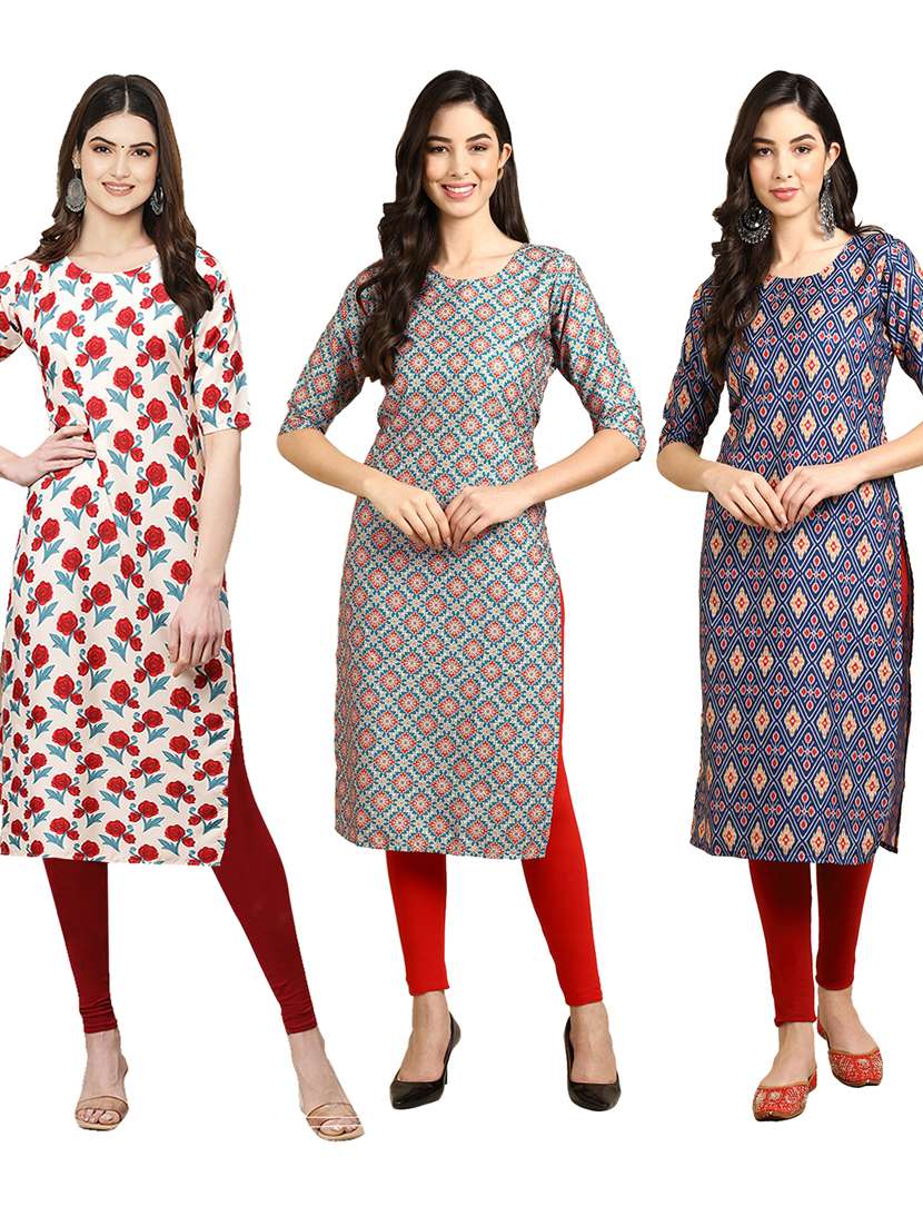 pack off 3 printed straight kurta