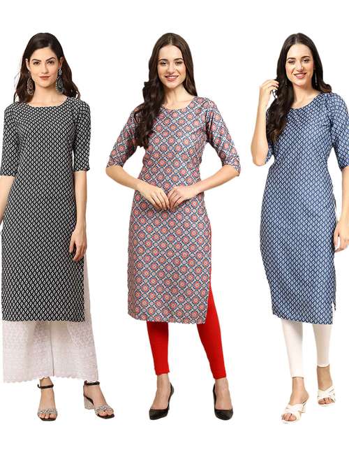pack of 3 printed straight kurta - 19400945 - Very Small Image - 1