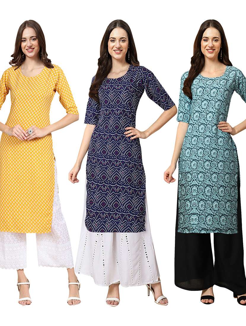 pack of 3 multi colored straight kurta