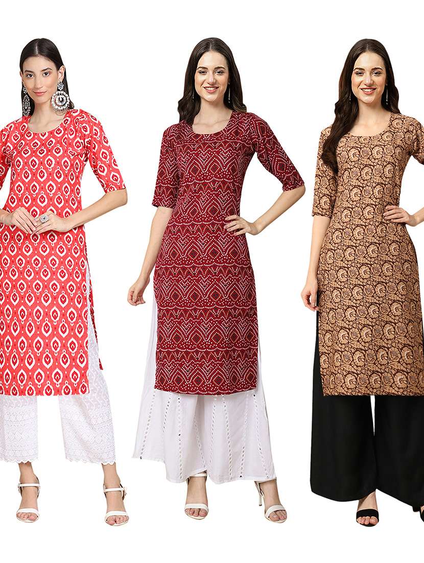 pack of 3 printed straight kurta - 19403775 - Very Small Image - 1