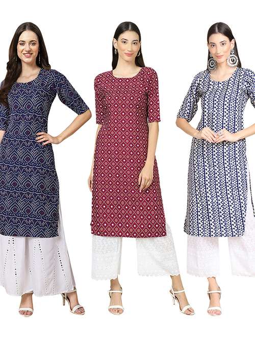 pack of 3 printed straight kurta