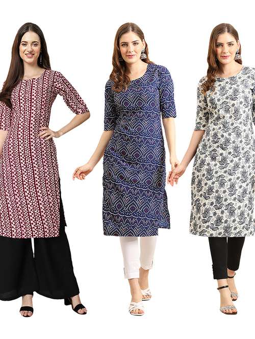 pack of 3 printed straight kurta