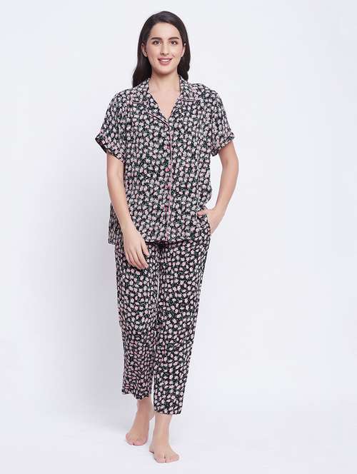 shirt collar printed nightwear pajama set