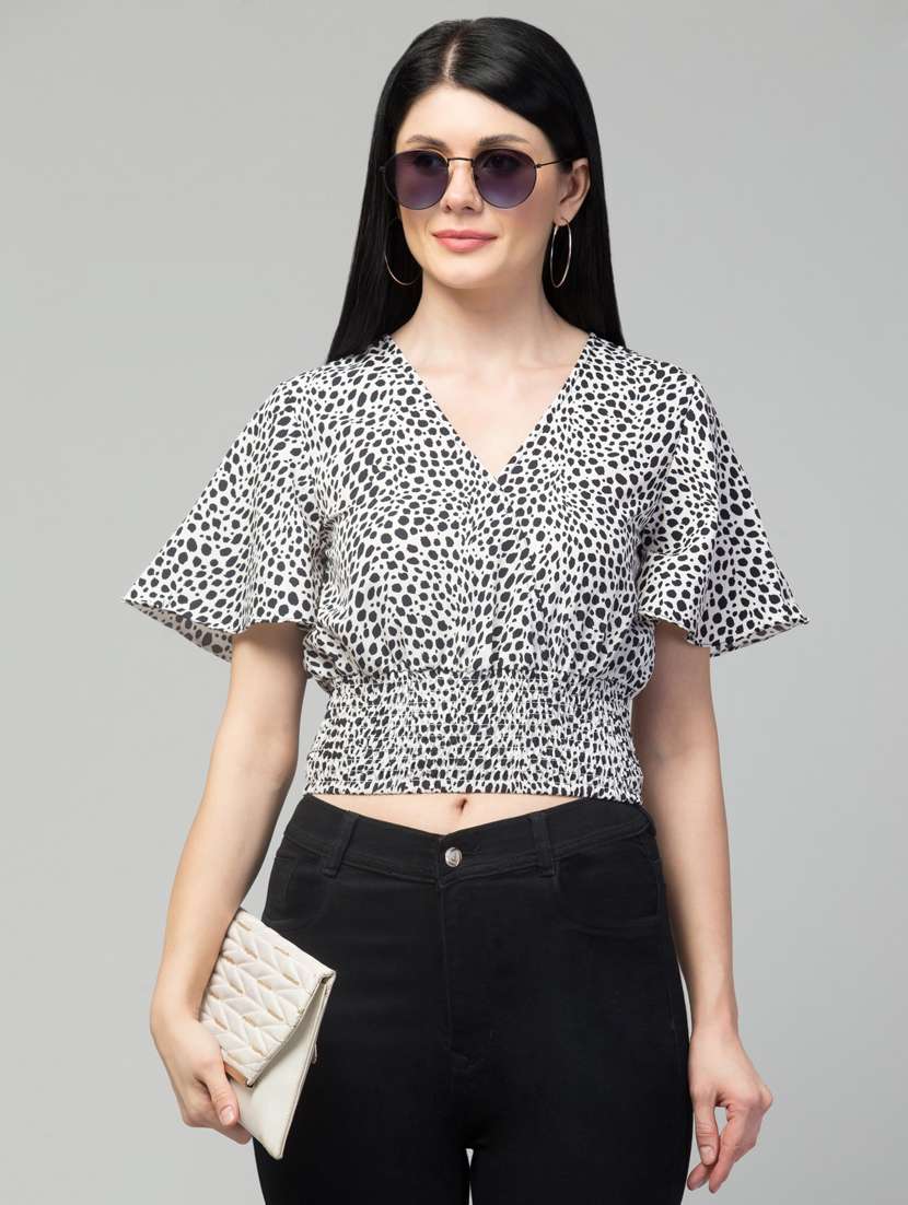 • Opt for this top made up of crepe material and get it in a varied neck design.