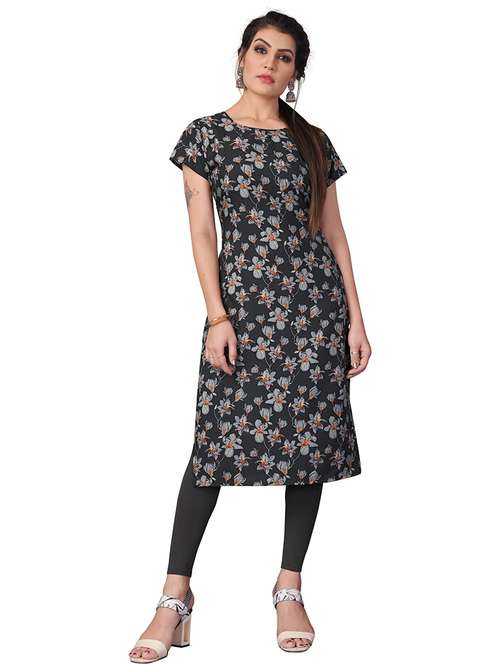 - Grab this beautiful kurta made up of crepe fabric featuring round neck designs.