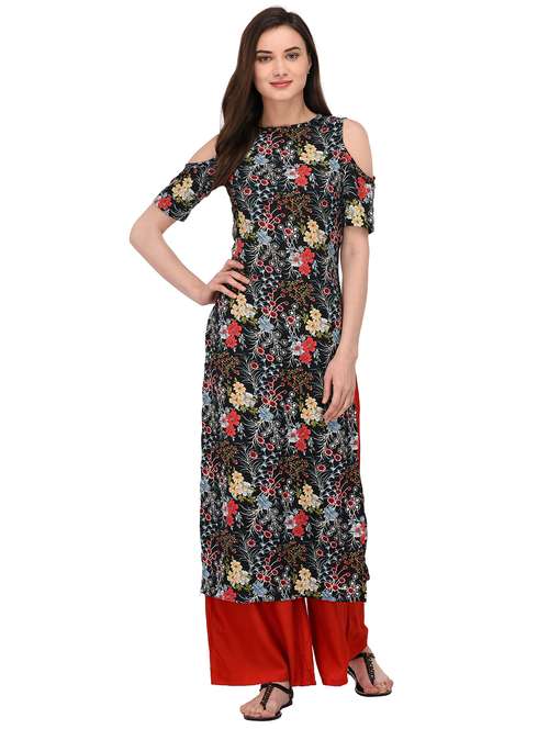 - » straight printed cold shoulder kurta