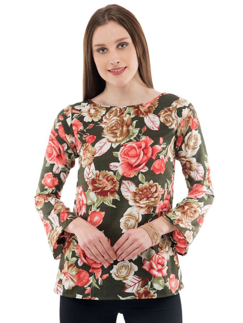 - Opt for this top made up of crepe material and get it in a boat neck neck design.
