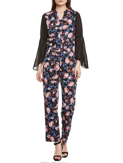 - » black printed crepe full leg jumpsuit