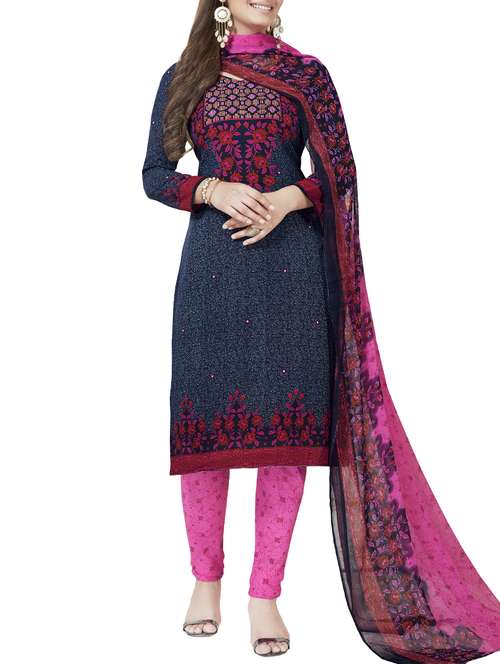 blue crepe unstitched churidaar suit