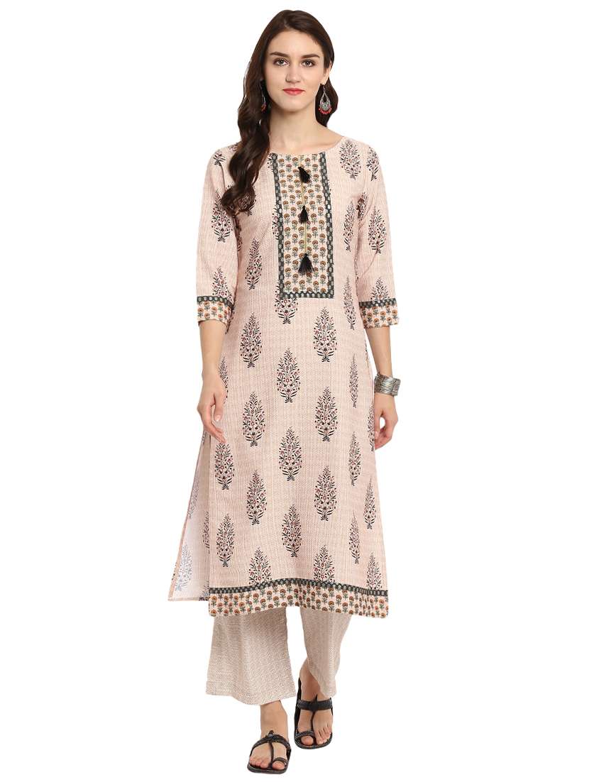 - » printed straight kurta with tassels