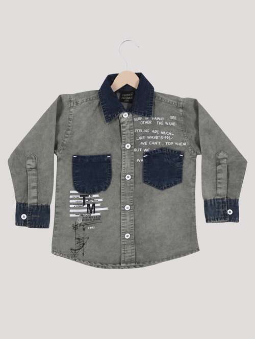 boys grey printed long sleeves denim shirt