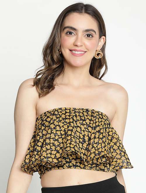 Floral printed strapless bralette is made of ultrasoft and comfortable fabric. Very good to wear on vacation and looks cool on beaches. It has a sweet ruffles on outer side and on the borders its all supported by elastic. An unmissed summer crop top from DRAAX FASHIONS with a feminine flirty touch. You can combine the bralette perfectly with the Ruffle Shorts for a playful look or with one of our nice skirts.