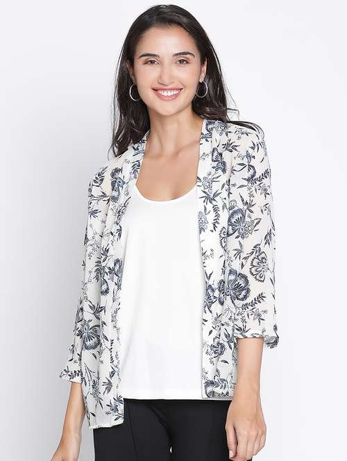 white printed regular shrug - 21399607 -  Standard Image - 1 white printed regular shrug - 21399607 -  Zoom Image - 1