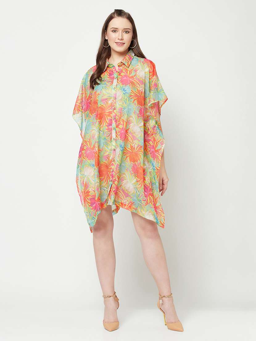 - » shirt collar printed fit & flare dress