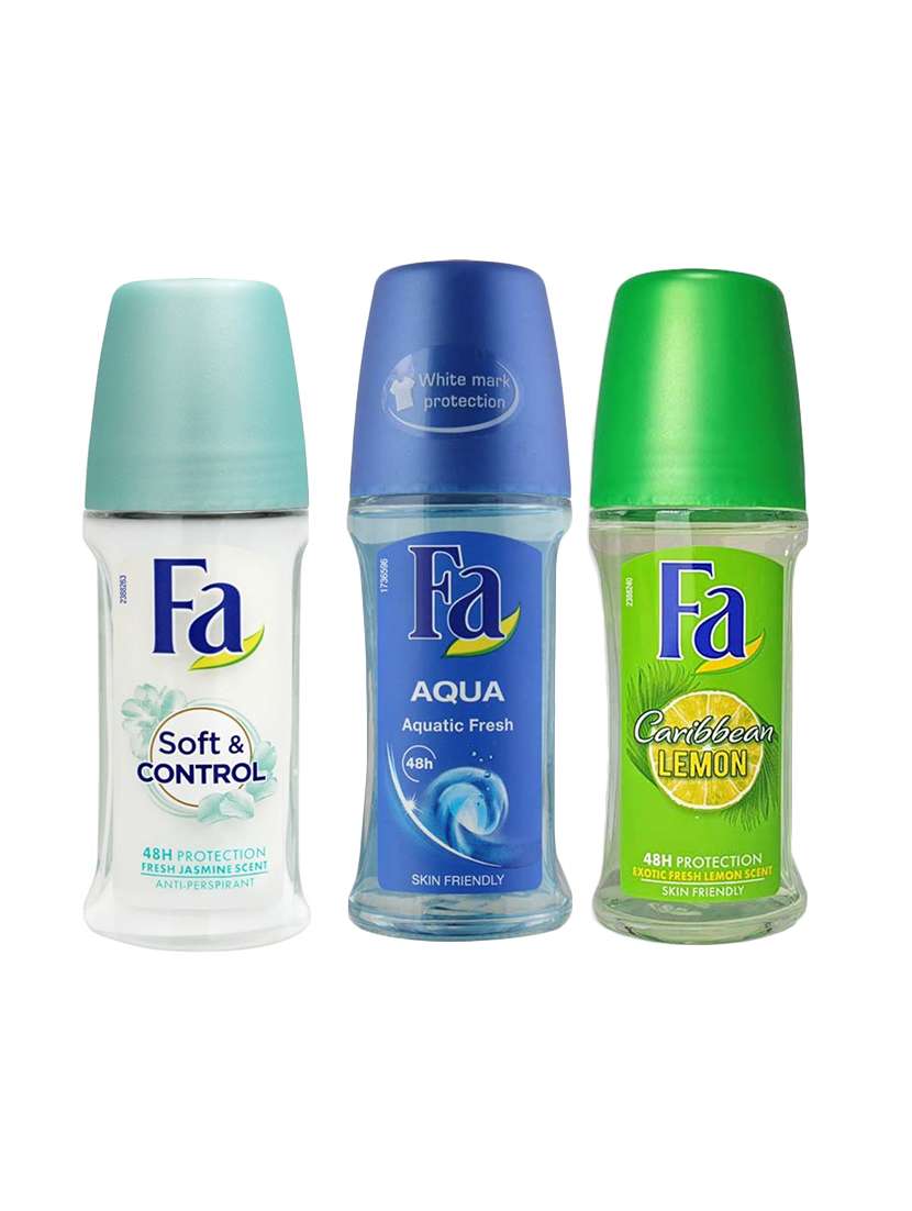 fa pack of soft & control ,caribbean lemon & aqua roll on