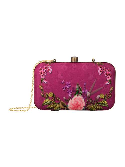 Magenta printed handmade clutch
