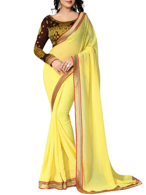 - » yellow faux georgette plain bordered saree with blouse