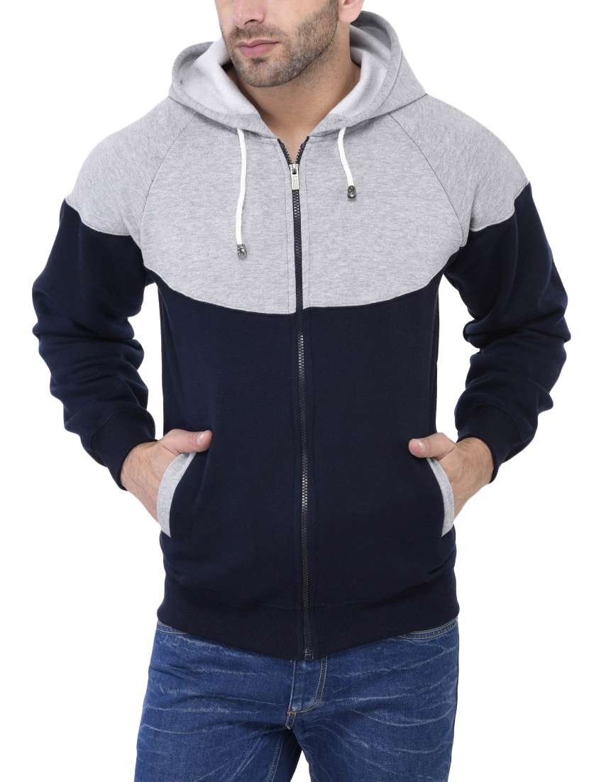 - » navy blue fleece color block casual jacket