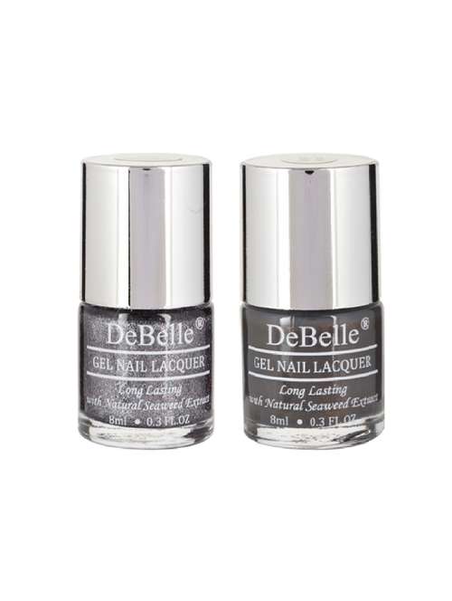 debelle gel nail lacquer (grey glitteratti & copper glaze) 8ml each pack of 2