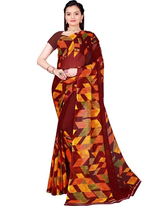 - » women's abstract maroon colored saree with blouse