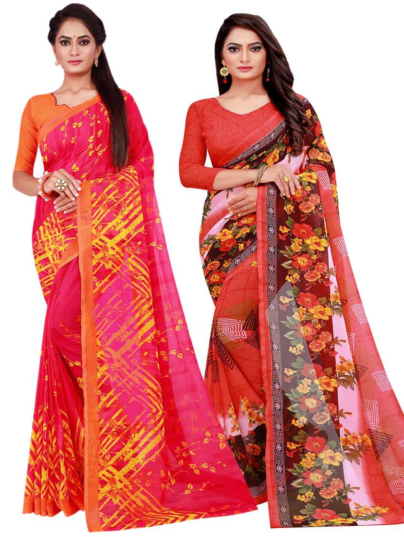 pack of 2 printed sarees with blouse